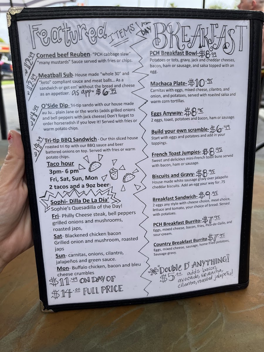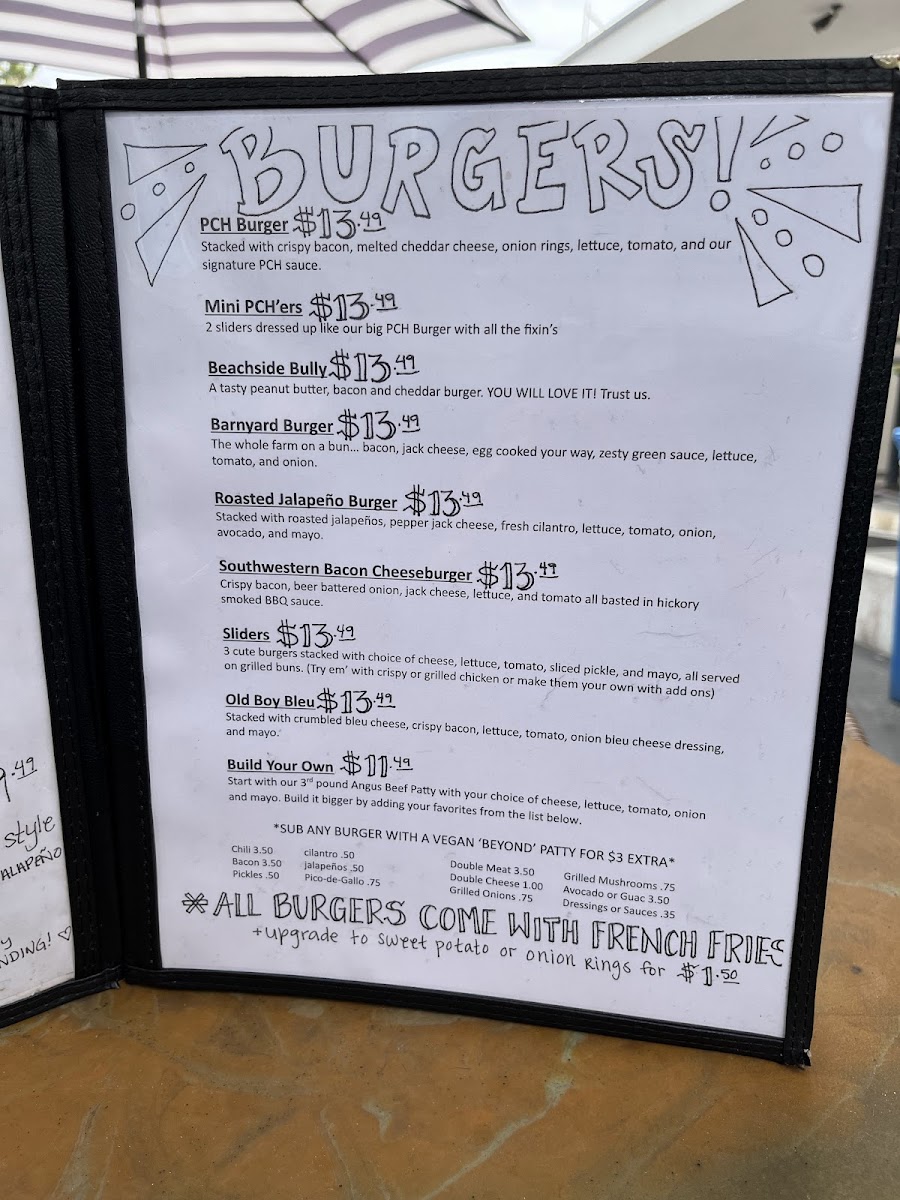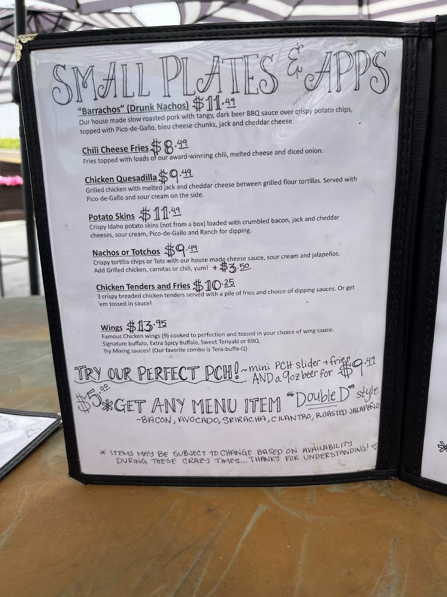 PCH Sports Bar Menu (2025 Update)